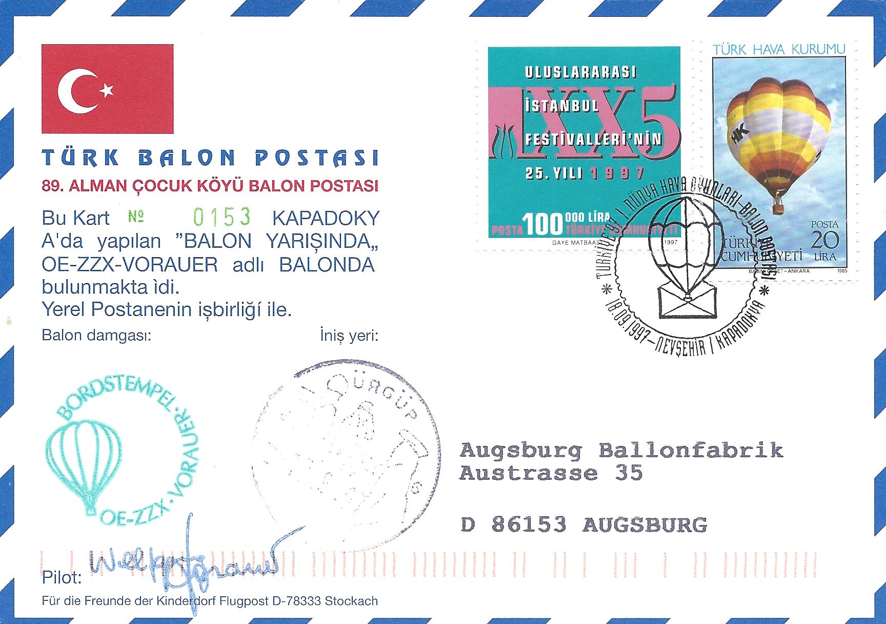 1997 yılında Uluslararası Havacılık Federasyonu (FAI) ve Türk Hava Kurumu (THK) işbirliği ile düzenlenen Dünya Hava Oyunları anısına PTT tarafından üç adet antiye kart çıkartılmış, ayrıca yarışmaların düzenlendiği her dalda açılış ve kapanış olmak üzere ikişerden yirmi farklı damga oyunlar süresince uygulanmıştır. Oyunlar sırasında birde balon postası yani balonla posta nakli gerçekleştirilmiş ve bu postalara özel damga uygulanmıştır. Böylece toplam olarak 66 kartlık setler oluşturulabilmiştir.