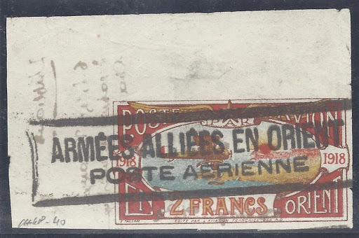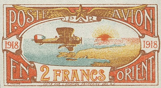 | 1918 deneme baskısı pul üzerine uygulanmış Fransız Askeri Hava postaları hatıra damgası |