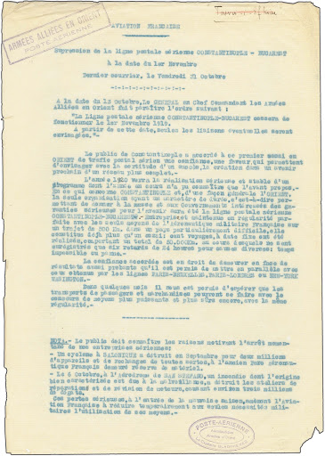 İlk başta Paris Bükreş arasında hava postası taşıyan şirket 30 Eylül 1922 tarihinde İstanbul’a ilk uçuşunu gerçekleştirdi, aynı yıl 15 Kasım 1922 tarihinde bir uçuş daha gerçekleştirdikten sonra uçuşlara ara verildi.