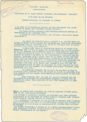 1920 yılının Temmuz ayında benzeri bir hizmet Fransız işgalindeki güney bölgemizde Halep-İskenderun-Deyrizor şehirleri üçgeninde benzeri nedenler ile Fransızlar tarafından başlatıldı.