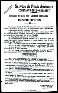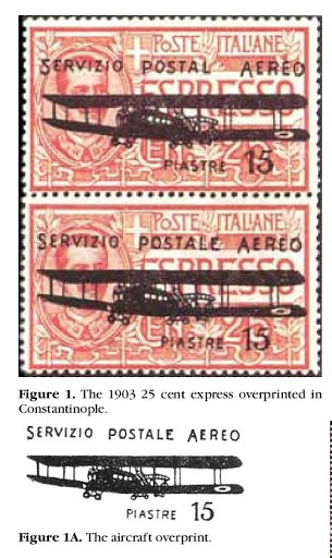 İstanbul’a yapılan CFRNA uçak seferleri ile taşınacak hava postaları için, İtalyan postahanesi ellerinde bulunan 1903 baskısı 0.25 liret kırmızı ekspres posta pulları üzerine İstanbul’da bir matbaada Uçak profili resimli ve Servizio Postale Aereo – Hava Posta Servisi 15 piastre yazılı bir üst baskı ile yanda resmi görülen pulları yaptırdılar. Ancak italyanlar gerekli izinleri alamadıkları için pullar kullanılamadılar ve Lozan Anlaşması sonrası yabancı postahaneler kapatılınca hatıra amacı ile alınan birkaç pul dışında kalan pullar imha edildiler.