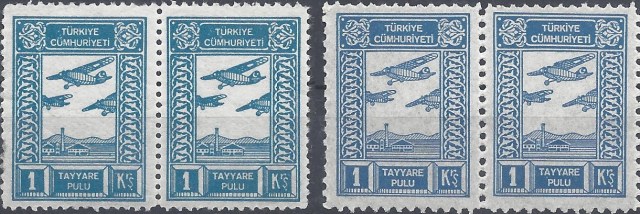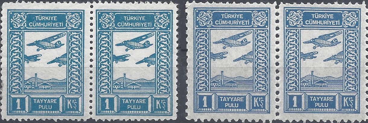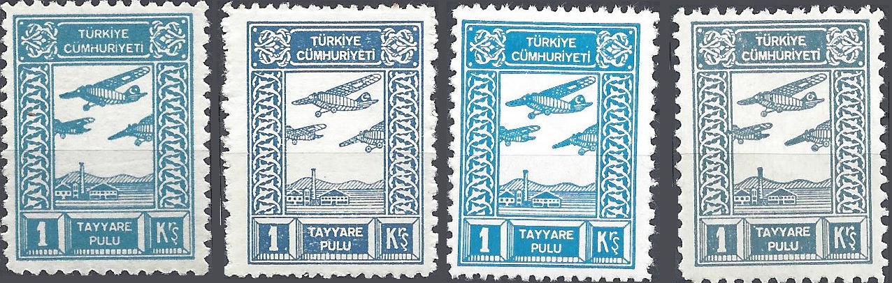Tayyare pulu uygulaması 25 yıl sürdüğü için başta çok kullanılan bir kuruşluk pul olmak üzere bazı pullar pek çok defa yeniden bastırılmıştır, bu nedenle yukardaki örnek pullarda görüleceği gibi farklı kağıt, farklı renk baskı ve farklı renk zamklar görülmektedir. Ayrıca aşağıdaki örnek pullarda görüldüğü gibi dantel varyeteleri de bulunmaktadır.