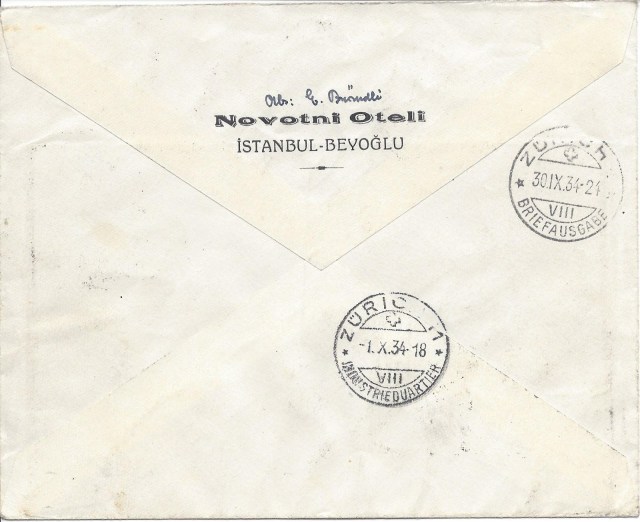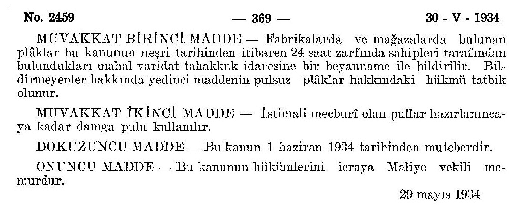 1934 yılı Mayıs ayında tayyare pulları ile ilgili kanun kabul edilmiş olsa da pulların kısa sürede bastırılması mümkün olmamıştır. Posta idaremiz yukarda görülen ilgili kanunun ikinci ek maddesi gereği olarak 30 Ağustos 1934 günü yapılan uygulamalarda tayyare pulu yerine aşağıdaki İstanbul damgalı zarfta görüldüğü şekilde damga pulu kullandırmıştır.