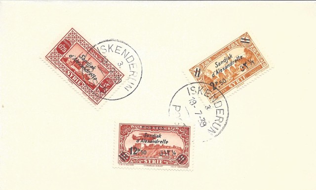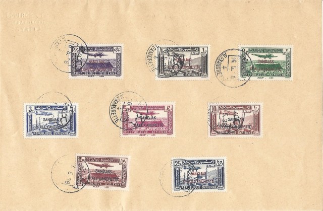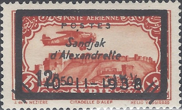 Birinci Dünya Savaşı öncesi Osmanlı İmparatorluğu kontrolünde olan Suriye bölgesi savaş sonrasında Fransız kontrolüne geçti. 1930 lu yıllarda Suriye posta idaresi koleksiyoncuların uçak pulu talebini dikkate alarak çeşitli Suriye şehirleri üzerinde uçan uçak resimli pul serileri çıkardı. Hatay bölgesi 1937 yılında özerklik kazandığı zaman bu pullardan bazıları üzerine “Sandjak d’Alexandrette” (İskenderun Sancağı) üstbaskısı yapılarak otonom Hatay bölgesinde kullanıldılar.