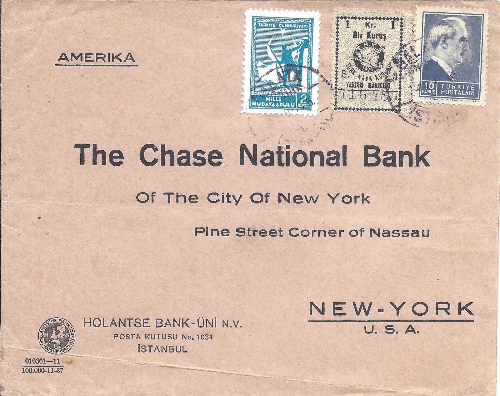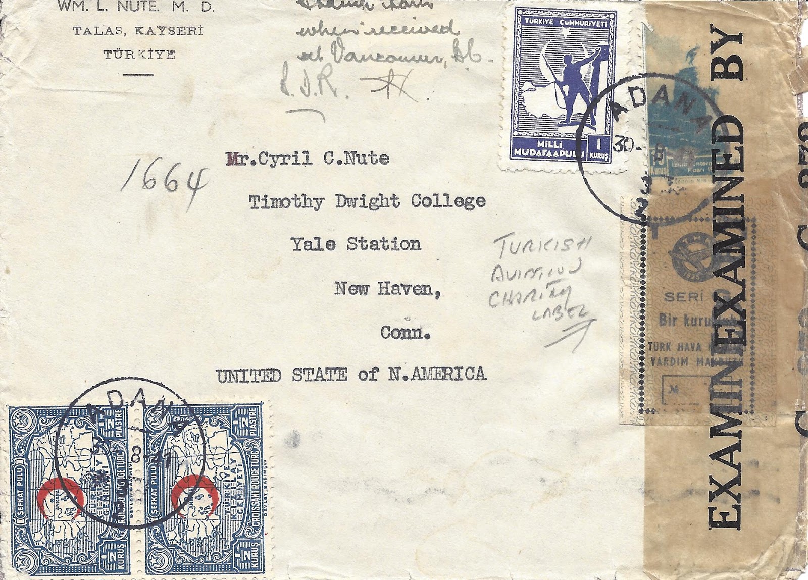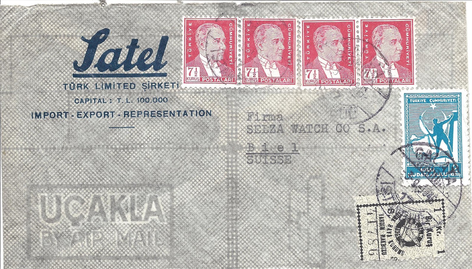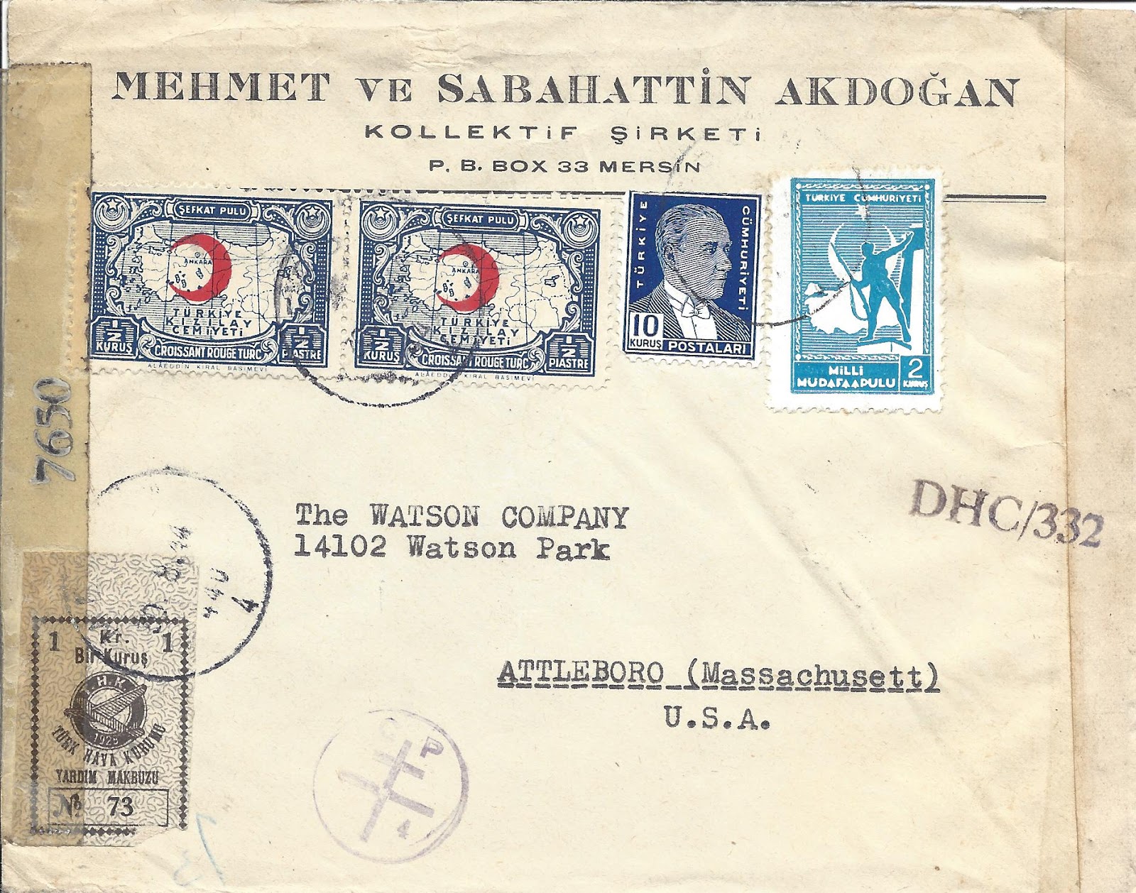 30 Ağustos 1941 Zafer bayramı günü gönderilen zarfa ilgili kanun gereği Maliye Bakanlığı tarafından bastırılan Tayyare Müdafaa harç pulu yapıştırılması gerekirken yerine THK yardım makbuzu kullanılmış.