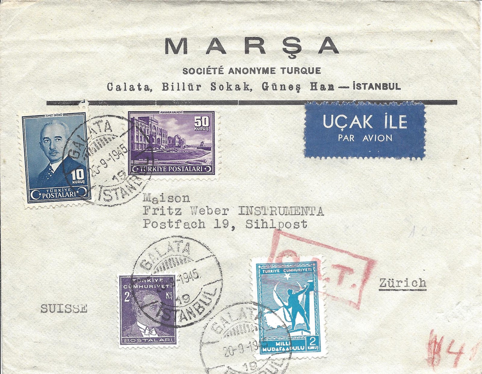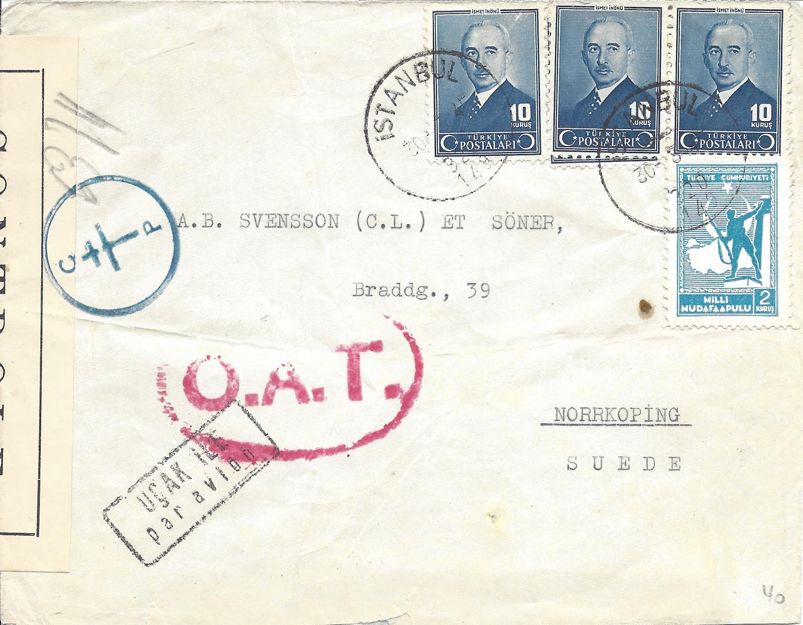 1944 yılında yapılan Normandiya çıkarmasından kısa bir süre sonra 1945 yılı yazında Almanya teslim olmak zorunda kaldı, böylece Avrupa’da uçak postaları yeniden düzene girmeye başladı. Ancak bu geçiş dönemi sancısız olmadı, bu nedenle 1945 yılı sonbaharı ve kışında gönderilen uçak postası gönderilerinin uçak ile gönderilemediği için bazen normal yollar ile gönderildiği bazende yolun bir kısmını normal şekilde gittikten sonra uçak postası ile yoluna devam ettiği görülmektedir.