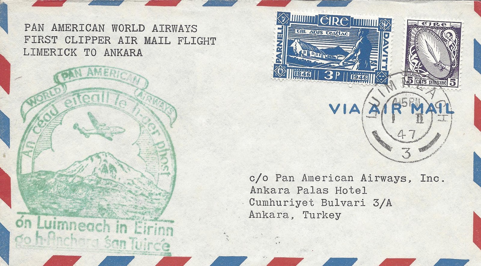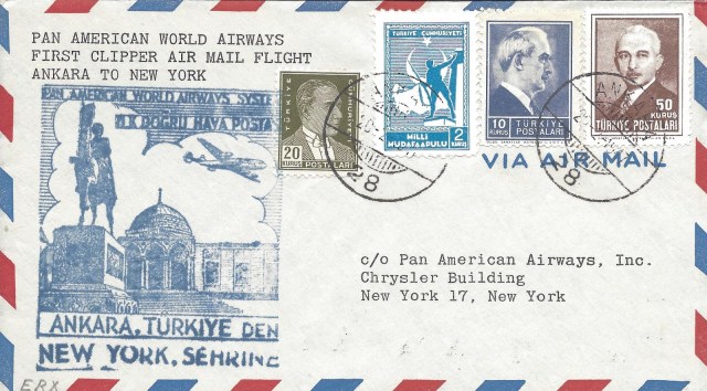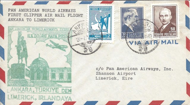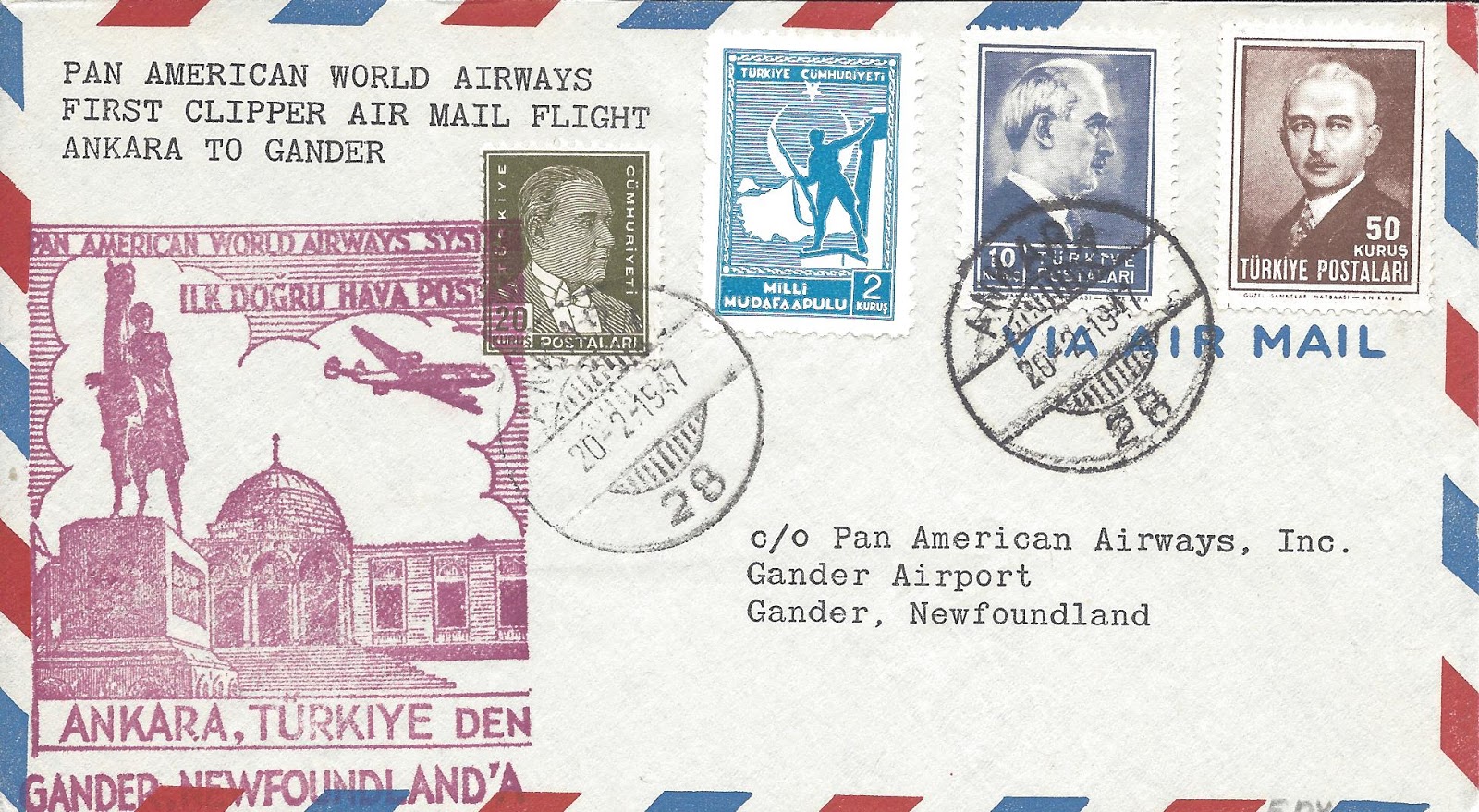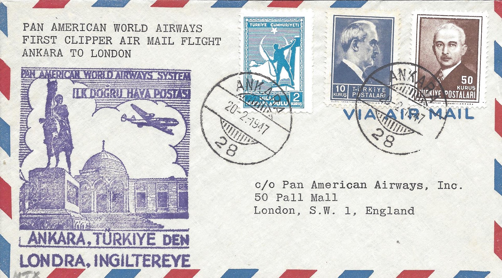 Önceki yazımda 1947 yılı Şubat ayı başında başlaması planlanan ancak 8 Şubat 1947 tarihinde ilk defa Ankara’ya inen ve Pan Amerikan havayolu şirketince gerçekleştirilen New York, Limerick/Kanada, Limerik/İrlanda, Londra, Ankara posta seferleri ile ülkemizden Amerika Birleşik Devletlerine taşınan bir ilk uçuş zarfını paylaşmıştım.