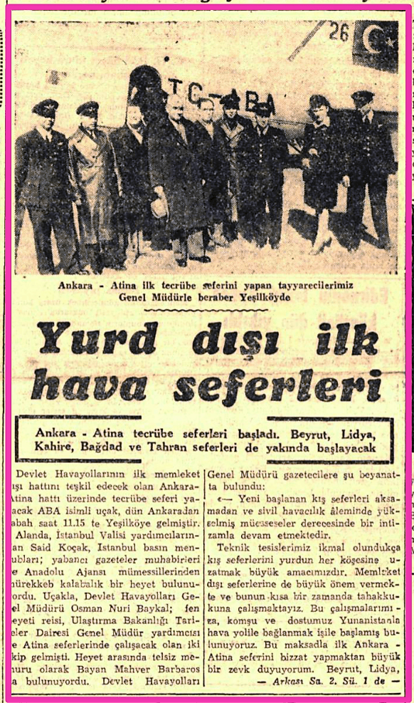 Bu uçuşların başlaması ile ilgili Filatelist dergisinde çıkan yazı;