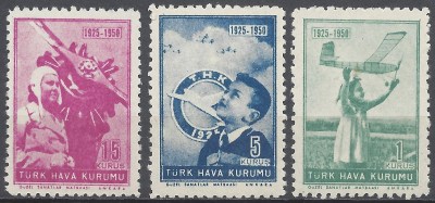İkinci Dünya Savaşının sonlarına doğru 1944 yılında kurulan Türk Hava Kuvvetlerine bir sivil toplum kuruluşu olan Türk Hava Kurumu gerek ekipman gerekse pilot, makinist ve diğer teknik elemanları ile destek olmuştur. Savaş bittikten sonra Etimesut’ta bulunan uçak fabrikası ve Atatürk Orman Çiftliği sahasında bulunan uçak motoru fabrikası ve benzeri diğer sivil havacılık konusundaki çalışmaları için mali kaynaklara gereksinimi artmıştı. 1925 yılındaki kuruluşundan hemen sonraki dönemde olduğu gibi, yardım pulları çıkartarak gelir elde etmek amacı ile kurum 1950 yılında kuruluşunun yirmibeşinci yılı anısına bir pul serisi çıkarmıştır.