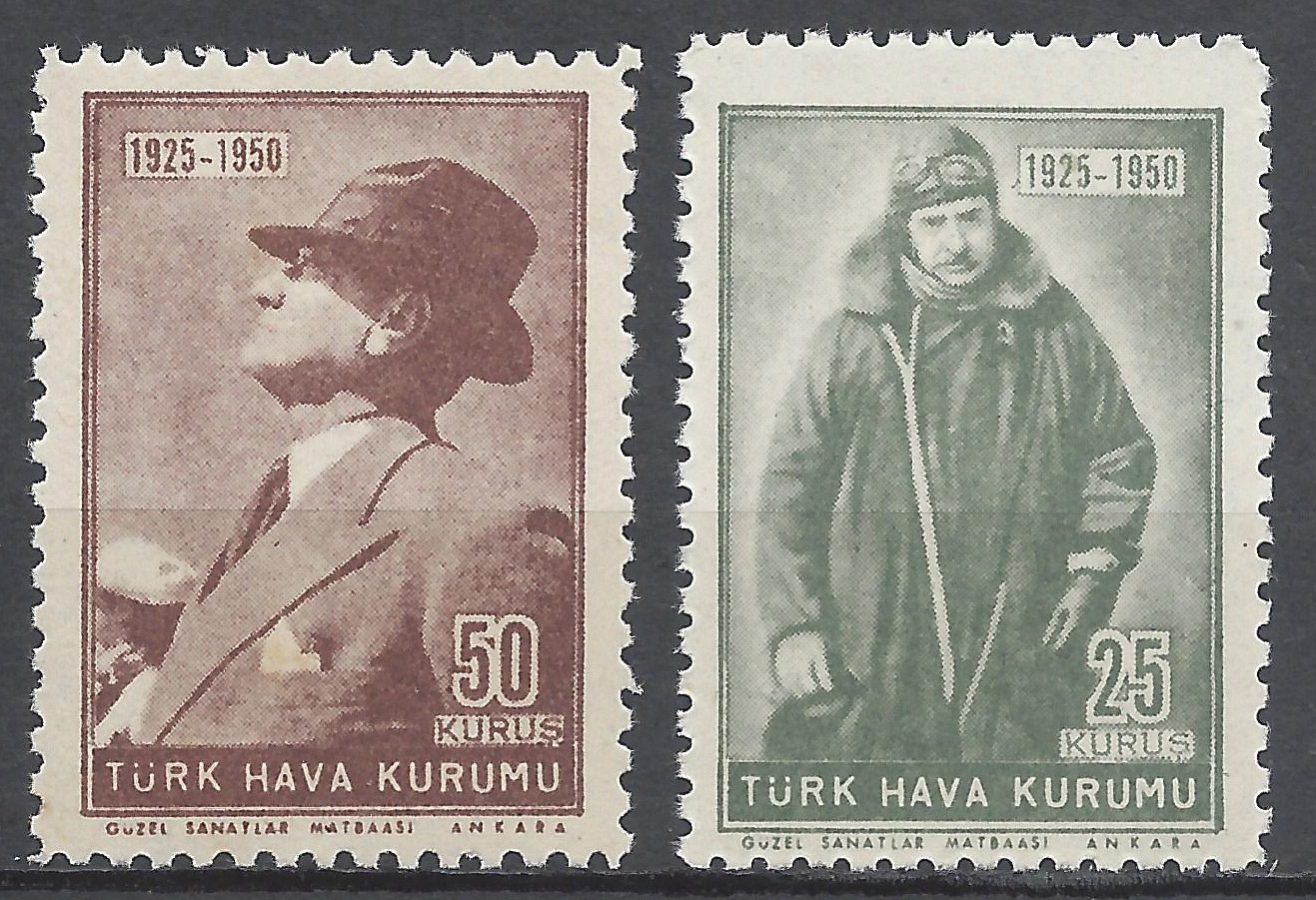 1950 yılında çıkarılan Türk Hava Kurumu yardım serisinin en büyük değerli iki pulun üzerinde Türk Hava Kurumunun gösterilerini izlerken çekilen fotoğrafı ile Atatürk ve bir avcı uçağına binerken dönemin pilot kıyafeti ile çekilen fotoğrafı ile İkinci Cumhurbaşkanımız İsmet İnönü yer almaktadırlar.