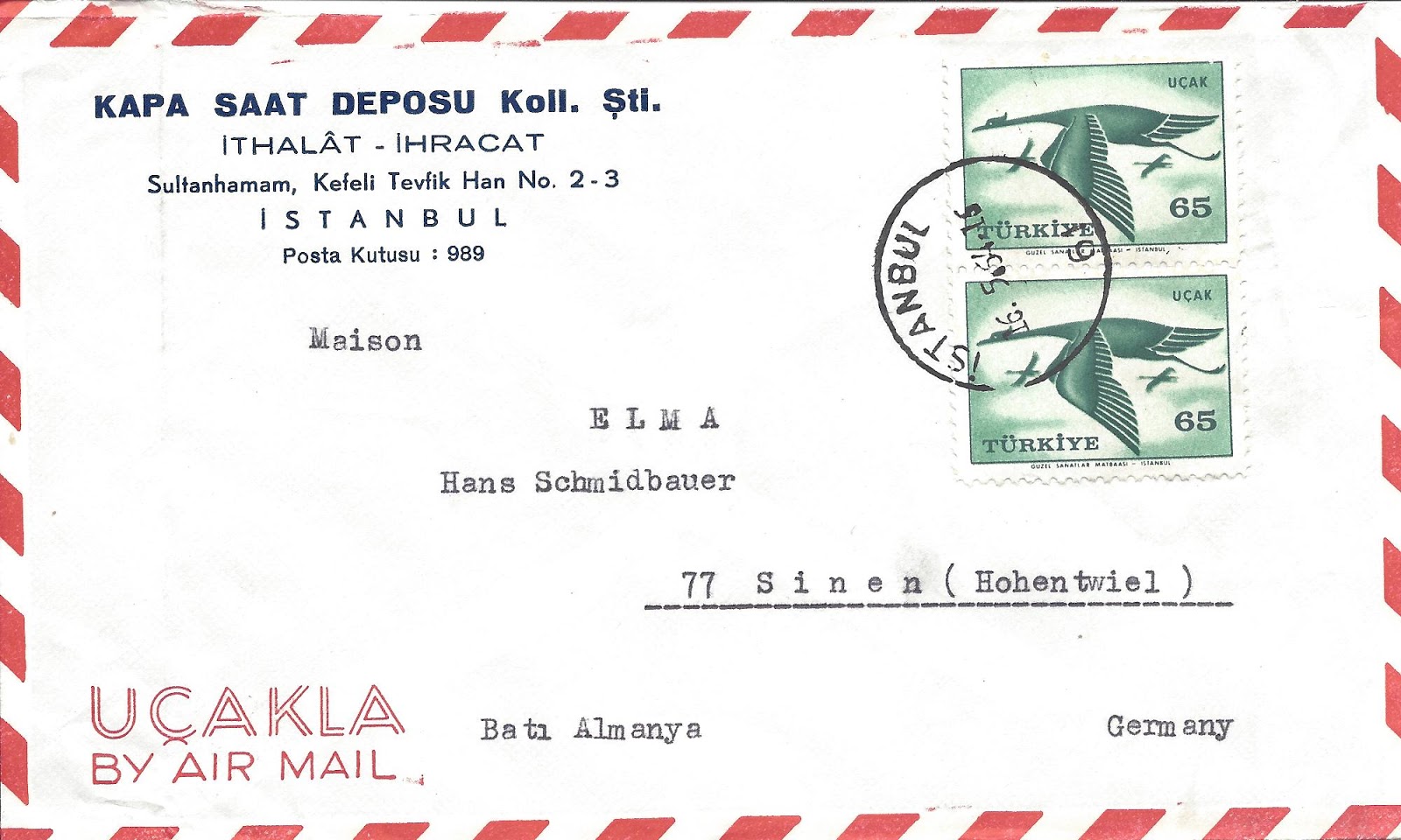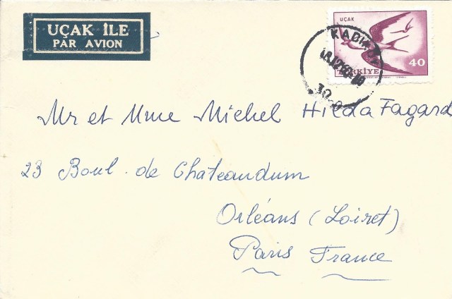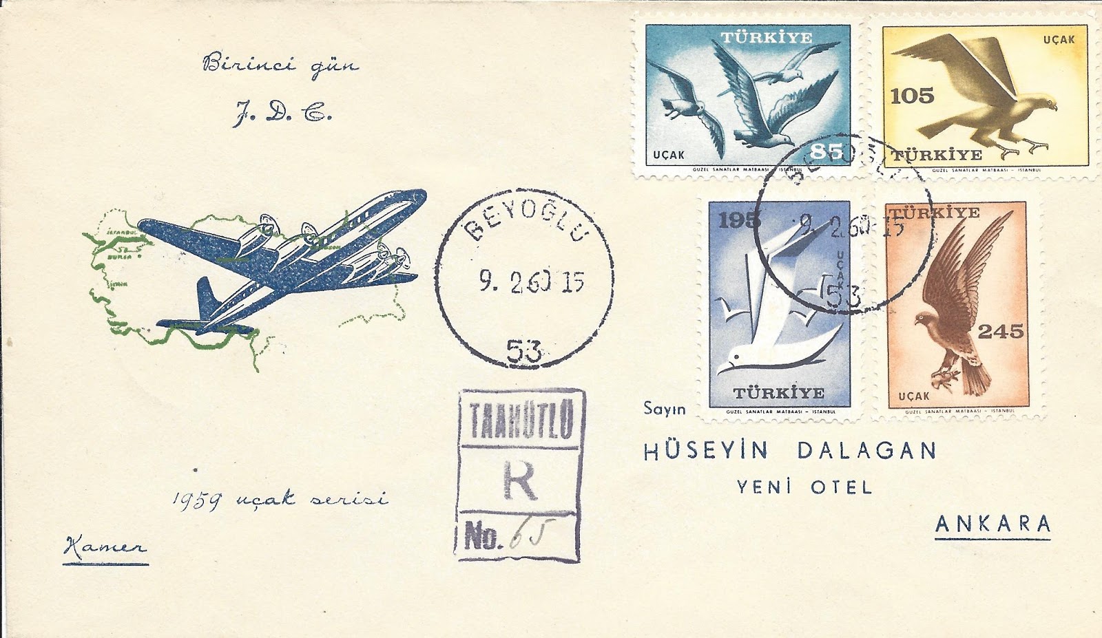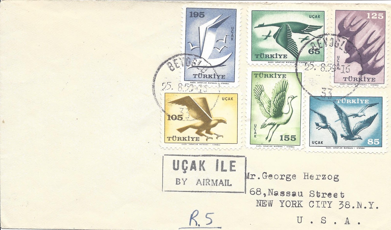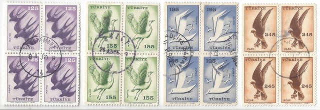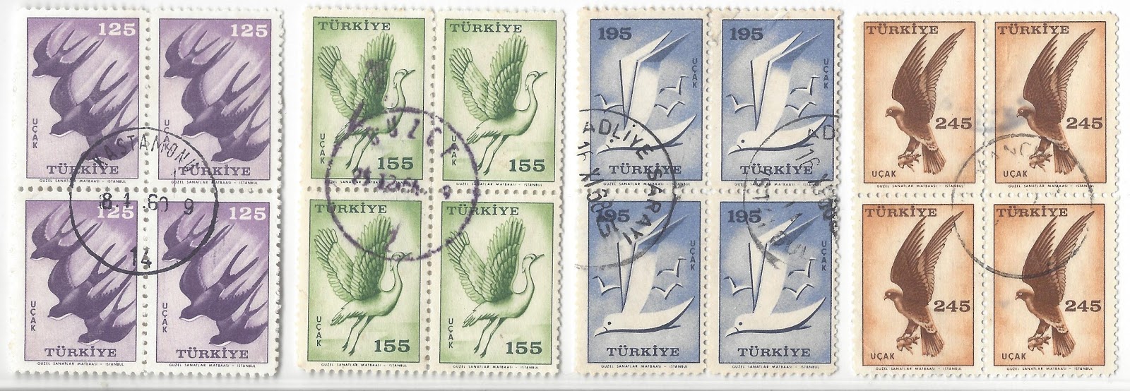 Aşağıda 1959 kuş resimli uçak pullarının normal posta kullanımlarından bazı örnekleri paylaşıyorum.