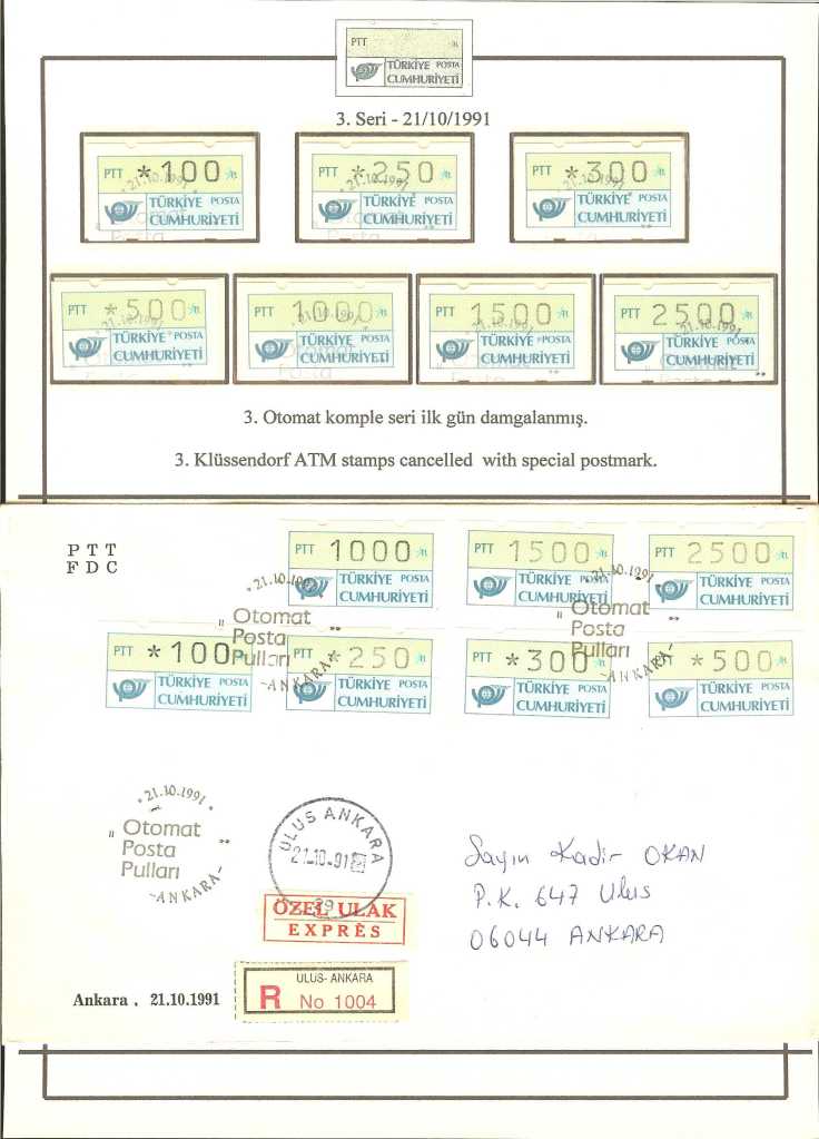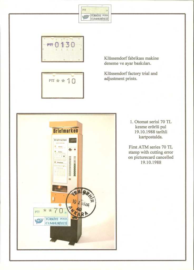 1987 yılında PTT Alman Klüssendorf şirketi yapımı olan pul otomatları satın alarak bunları Ankara’da yoğun yaya trafiği olan noktalarda denemiştir. 1987 yılında dokuz farklı değerli otomat pulu, 1988 yılında farklı dokuz değerli otomat pulu ve en son olarak 1991 yılında yedi farklı değerli otomat pulundan oluşan üç emisyon çıkarıldıktan sonra 1992 yılında Klüssendorf makinelerin kullanımına son verilmiştir. Bu seriler sırası ile I. Grup otomat pulları, II. Grup otomat pulları ve III. Grup otomat pulları adları ile İsfila kataloğunda yer almaktadırlar.